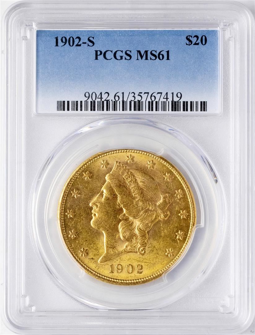 One 1902-S $20 Liberty Head Double Eagle Gold Coin PCGS MS61. PCGS Graded.