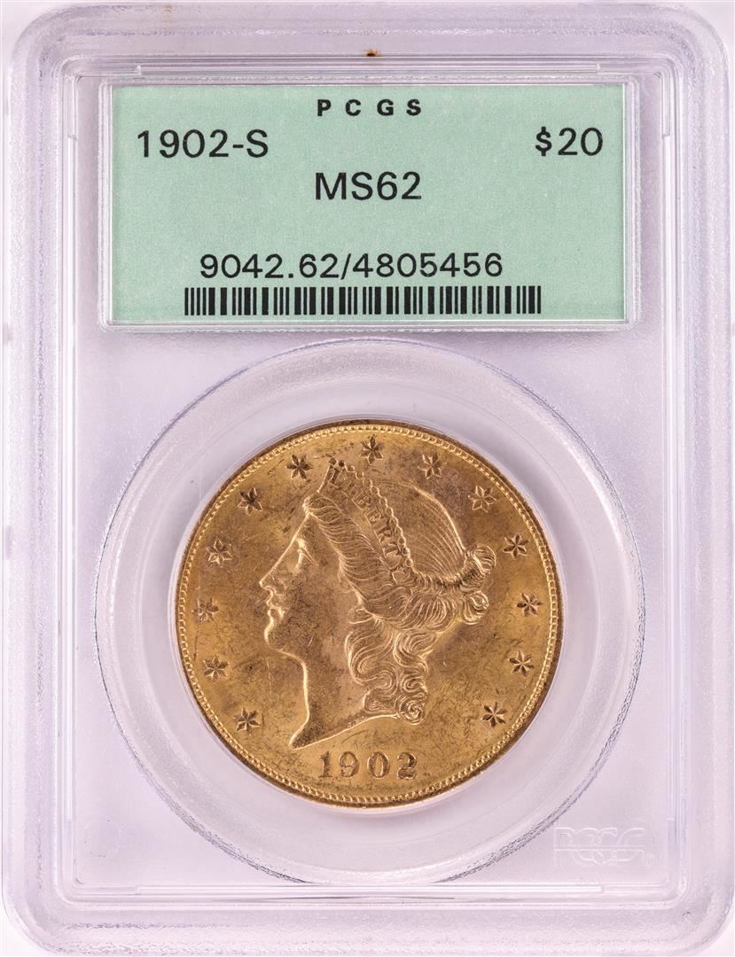 One 1902-S $20 Liberty Head Double Eagle Gold Coin PCGS MS62 Old Green Holder. PCGS Graded.