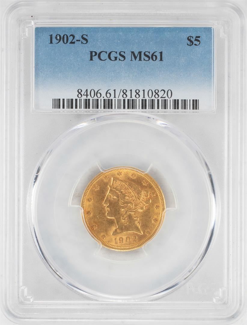 One 1902-S $5 Liberty Head Half Eagle Gold Coin PCGS MS61. PCGS Graded.