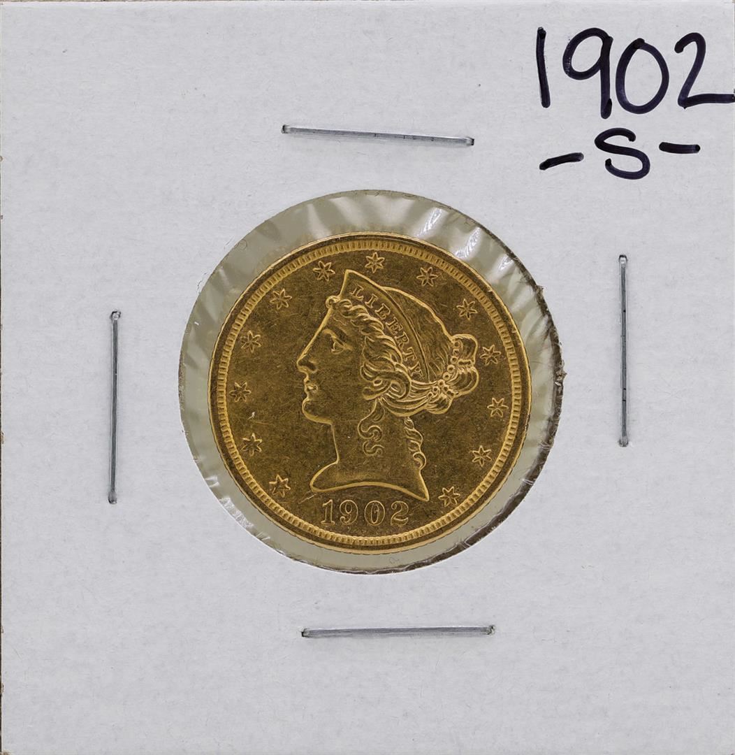 One 1902-S $5 Liberty Head Half Eagle Gold Coin.