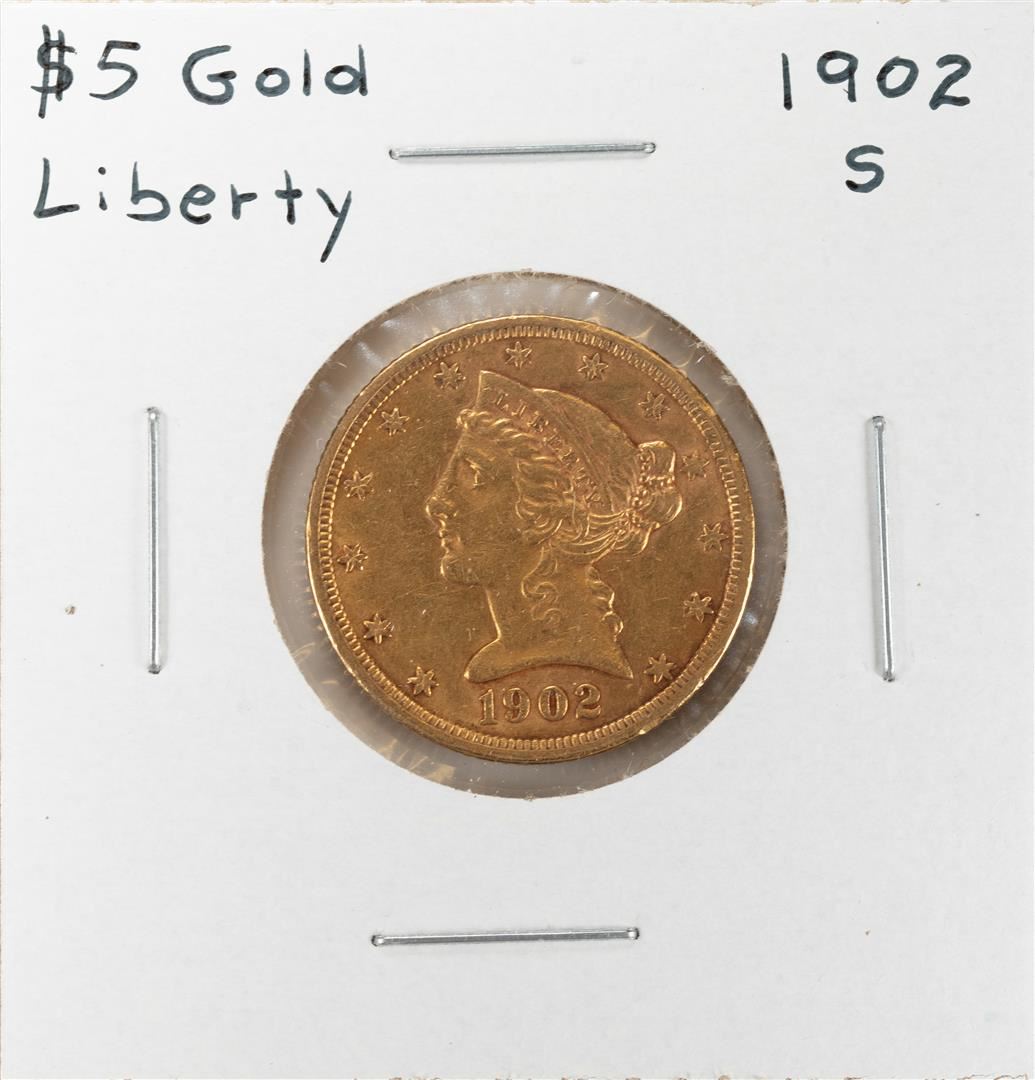 One 1902-S $5 Liberty Head Half Eagle Gold Coin.
