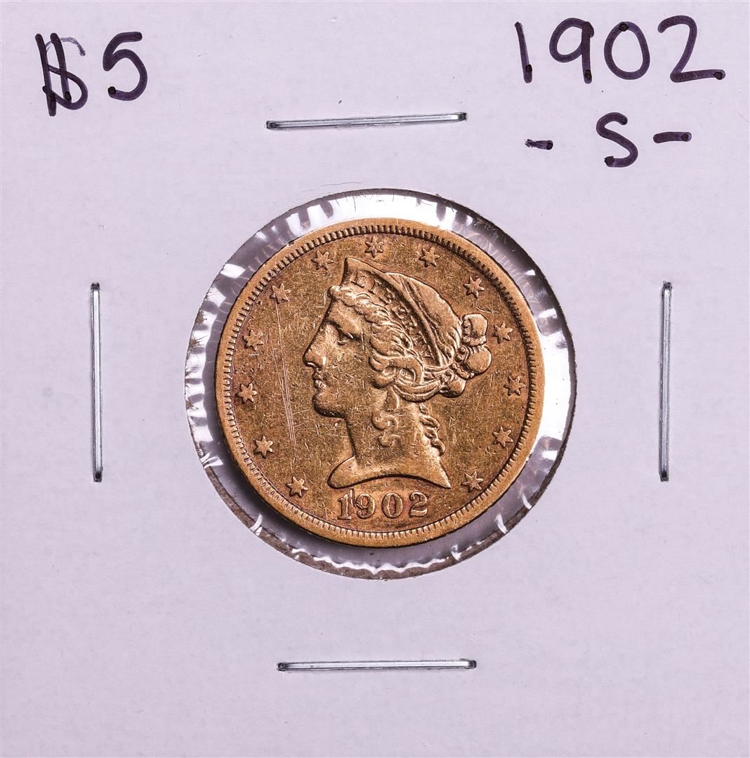 One 1902-S $5 Liberty Head Half Eagle Gold Coin.