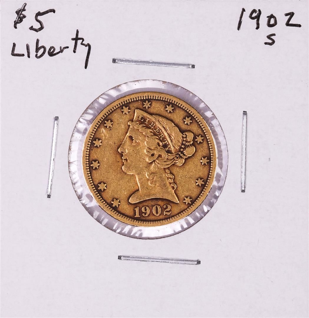 One 1902-S $5 Liberty Head Half Eagle Gold Coin.