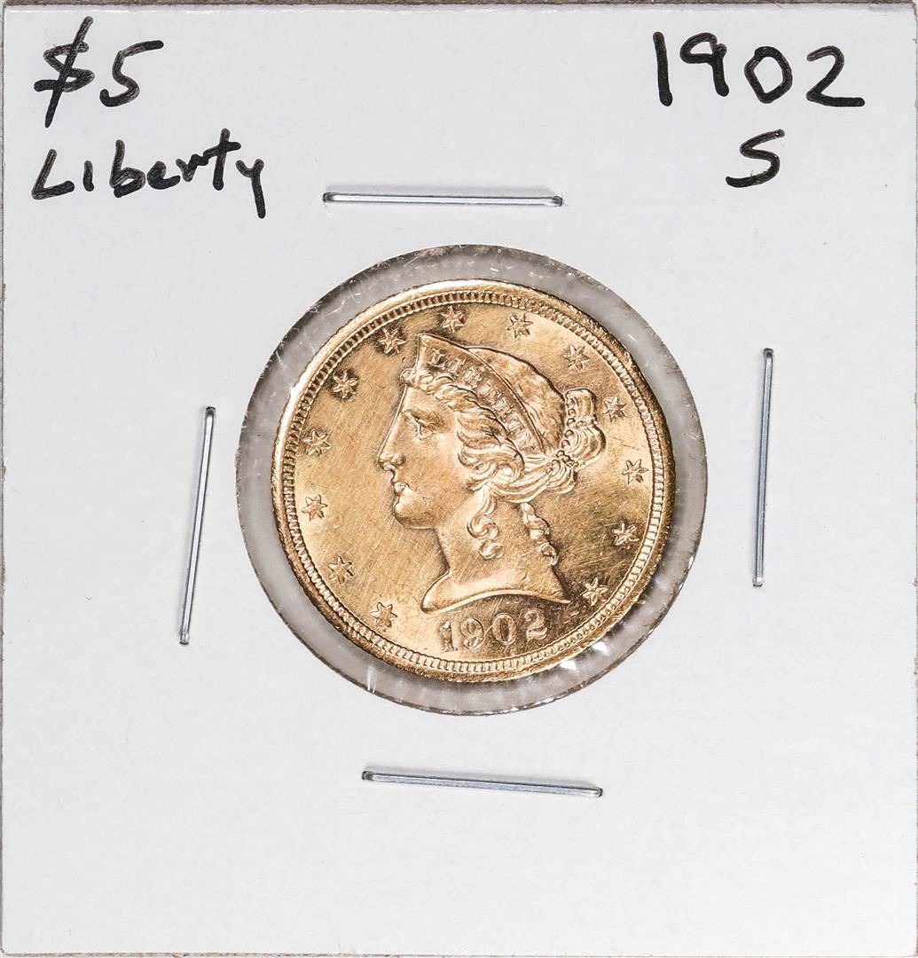 One 1902-S $5 Liberty Head Half Eagle Gold Coin.