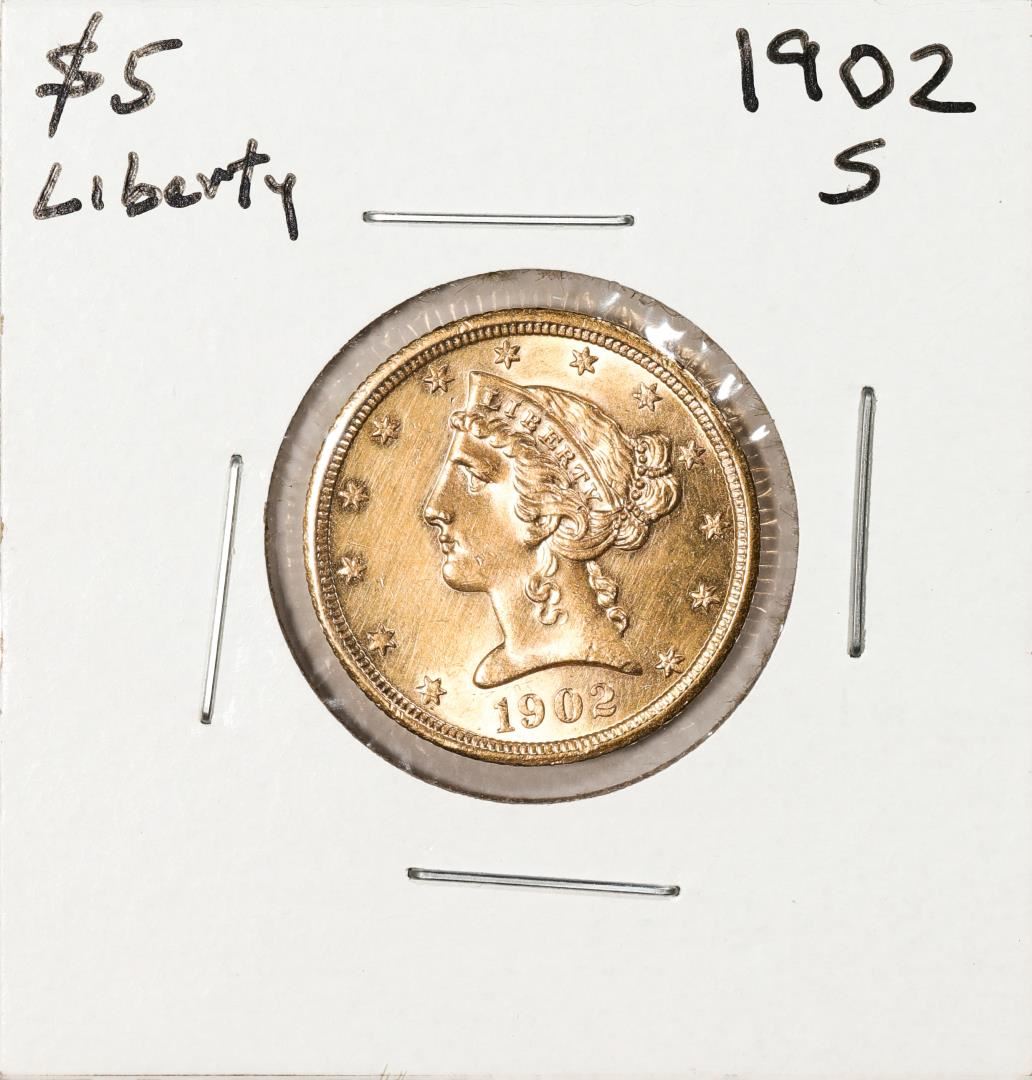 One 1902-S $5 Liberty Head Half Eagle Gold Coin.
