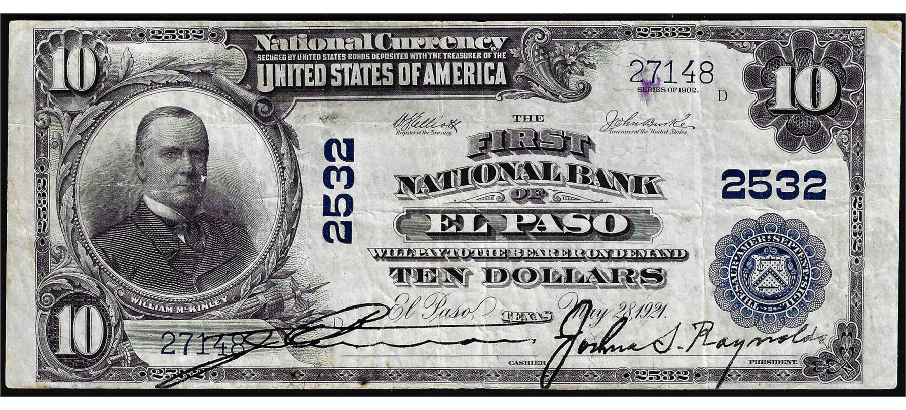 One 1902PB $10 First National Bank of El Paso, Texas CH# 2532 National Currency Note.