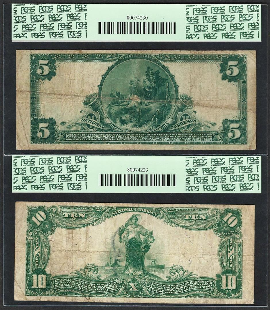 1902PB $5/10 First NB of Washington, PA CH# 586 National Currency Notes PCGS Fine 15