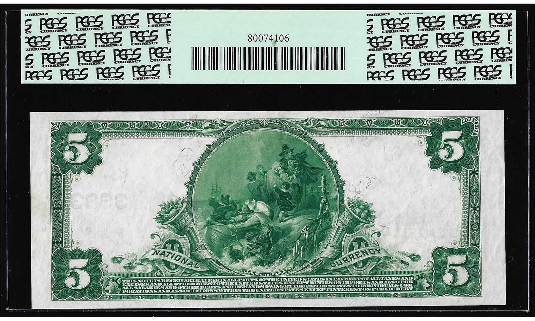 One 1902PB $5 Citizens NB of Washington, PA CH# 3383 National Currency Note PCGS AU58PPQ. PCGS Graded.