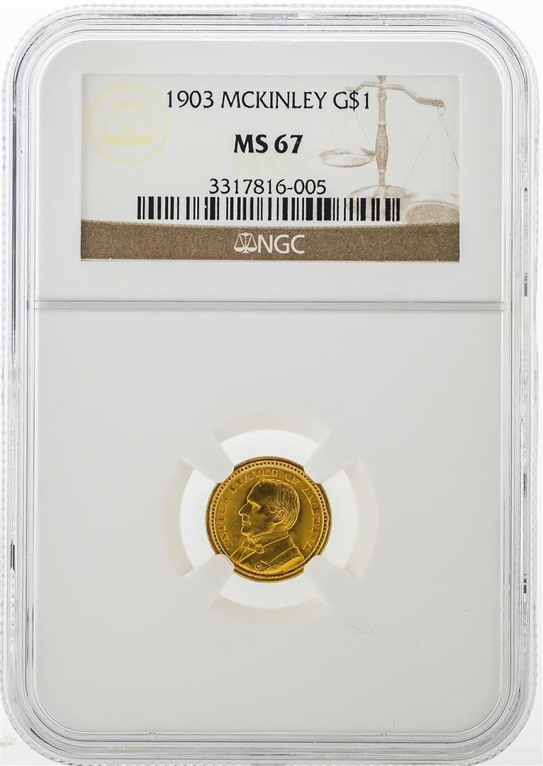 One 1903 $1 Gold Dollar McKinley Coin NGC MS67. NGC Certified.