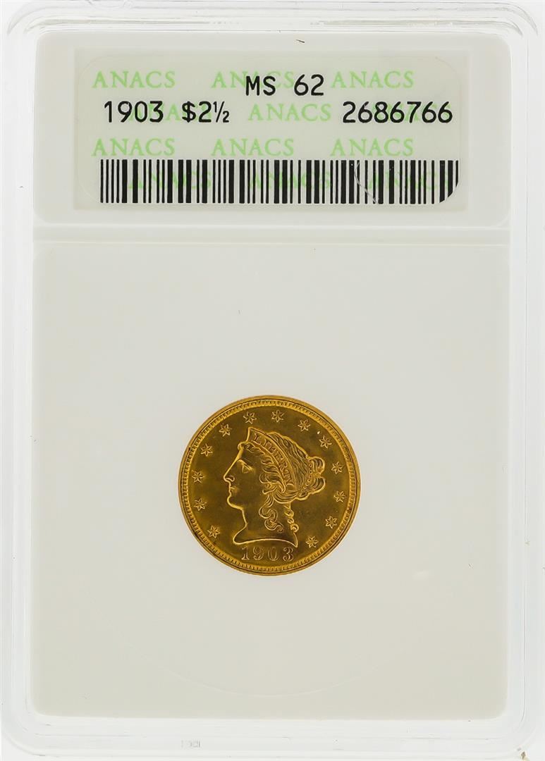 1903 $2 1/2 Liberty Head Quarter Eagle Gold Coin ANACS MS62