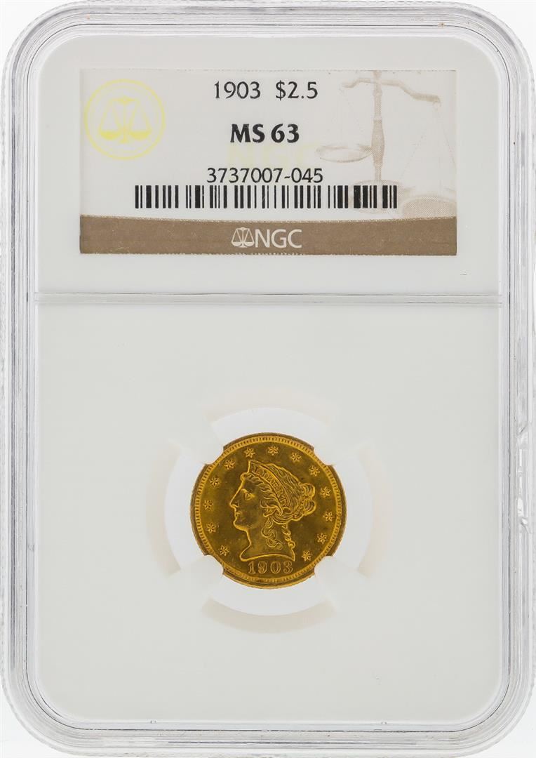1903 $2 1/2 Liberty Head Quarter Eagle Gold Coin NGC MS63