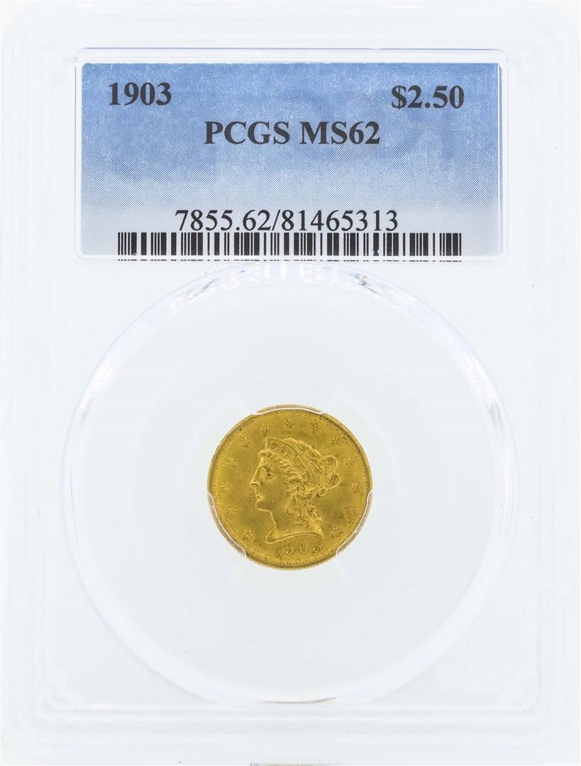1903 $2 1/2 Liberty Head Quarter Eagle Gold Coin PCGS MS62