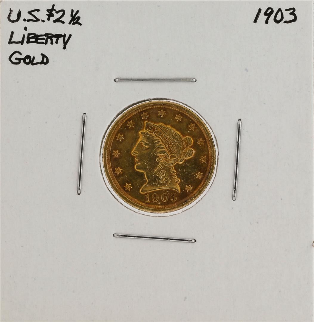One 1903 $2 1/2 Liberty Head Quarter Eagle Gold Coin.