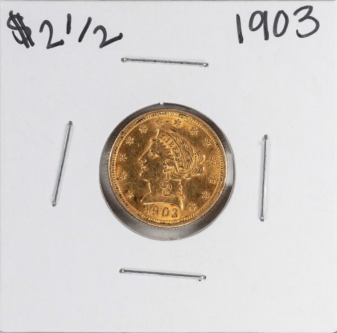 One 1903 $2 1/2 Liberty Head Quarter Eagle Gold Coin.