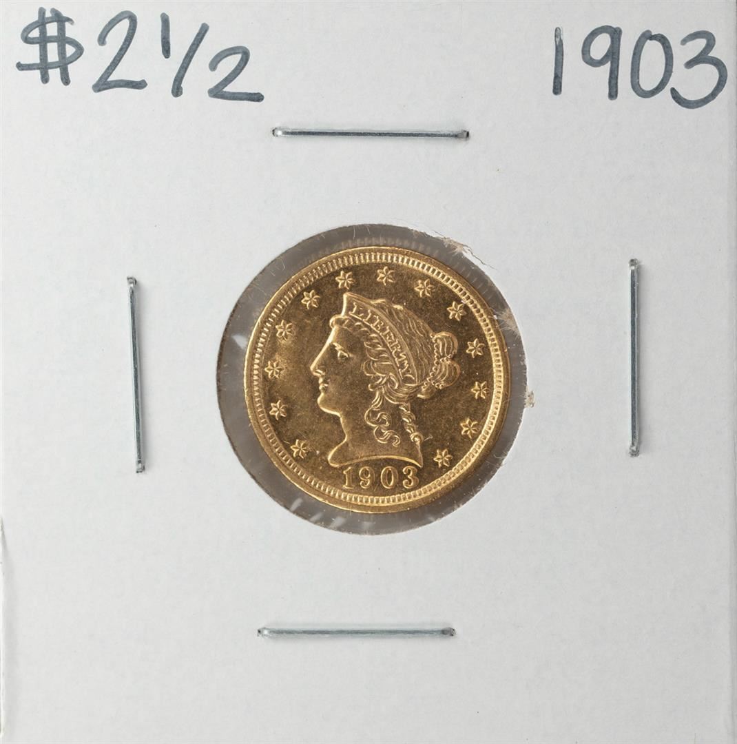One 1903 $2 1/2 Liberty Head Quarter Eagle Gold Coin.