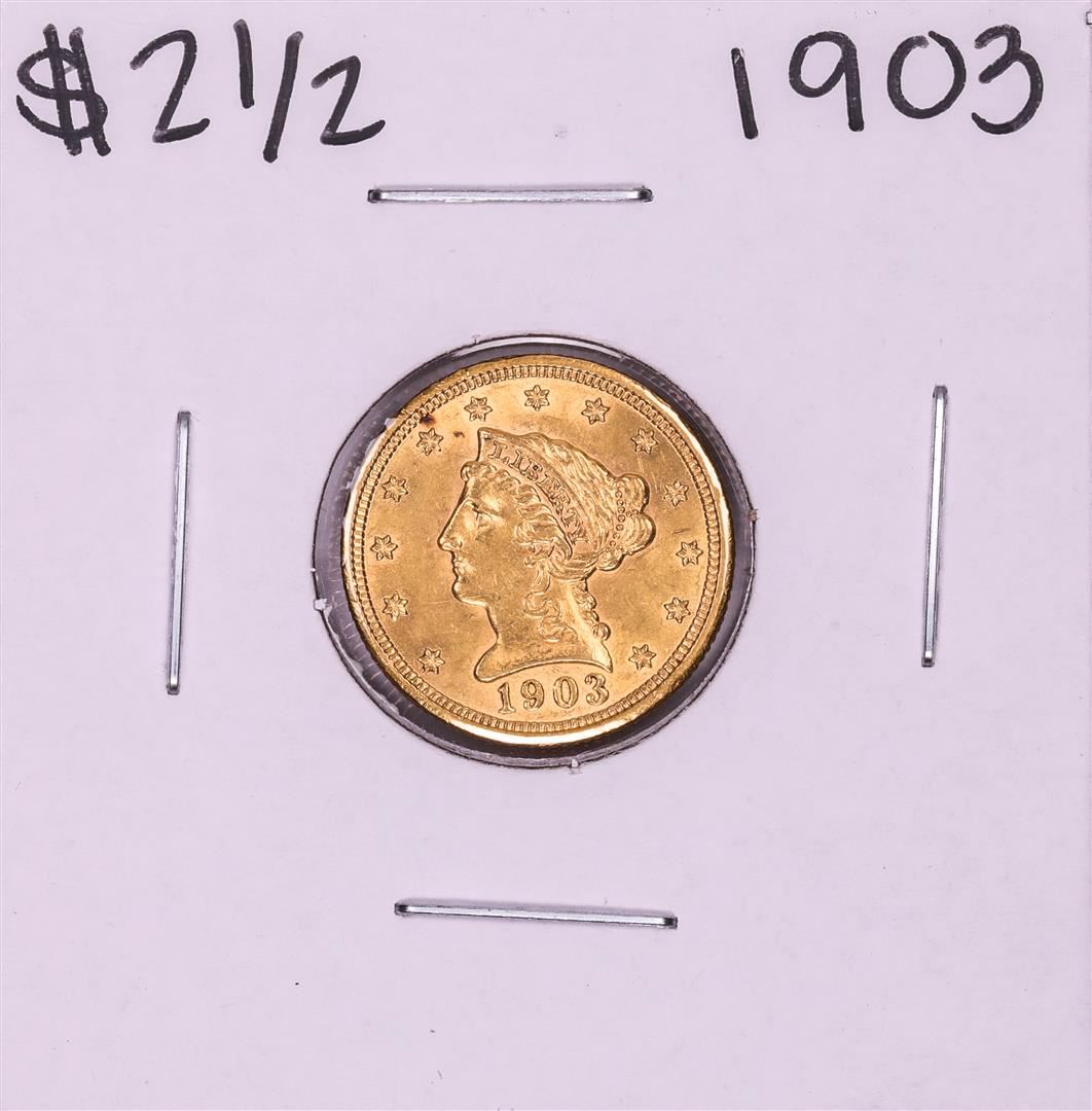 One 1903 $2 1/2 Liberty Head Quarter Eagle Gold Coin.