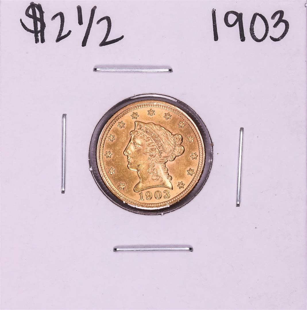 One 1903 $2 1/2 Liberty Head Quarter Eagle Gold Coin.
