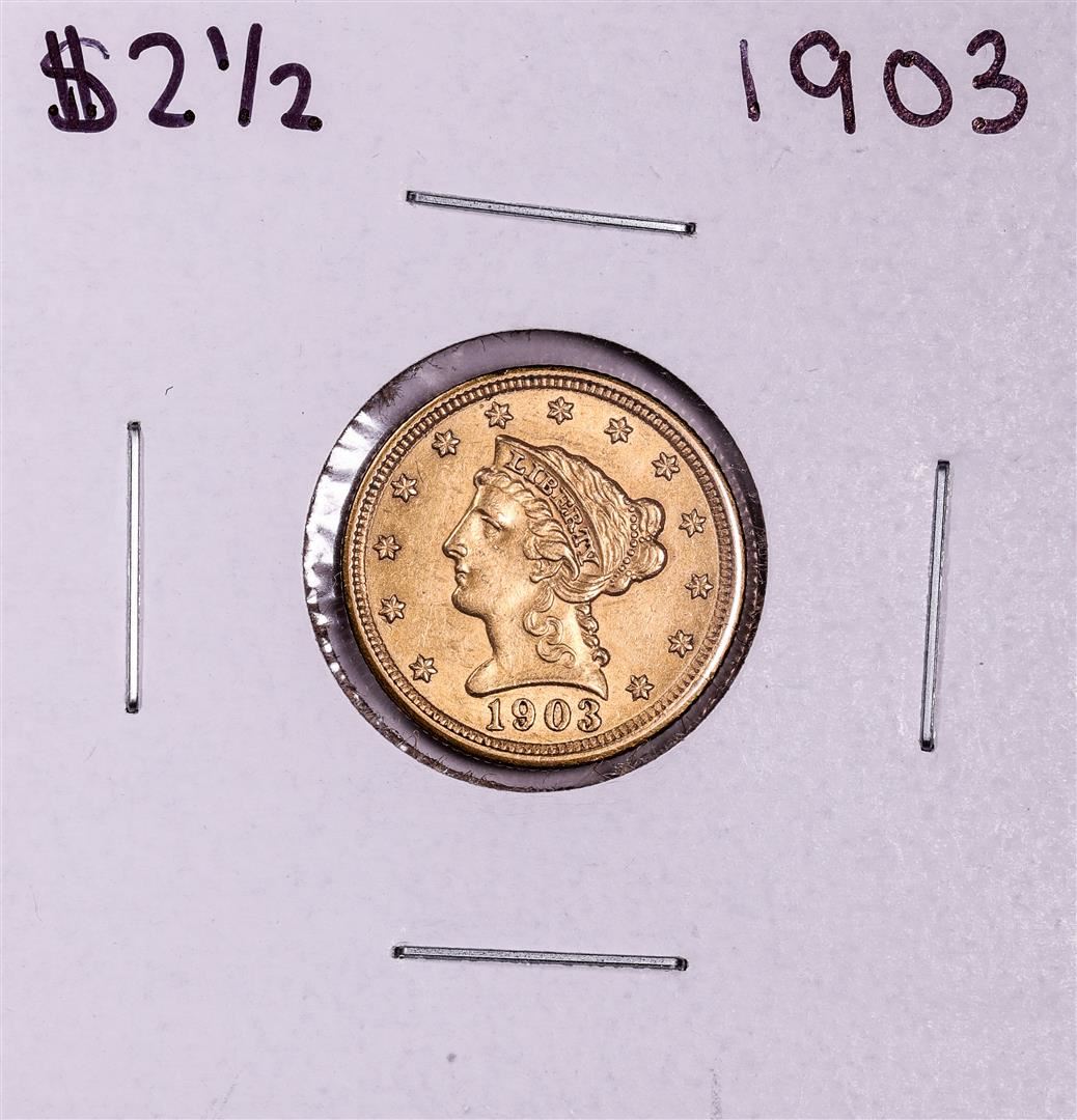 One 1903 $2 1/2 Liberty Head Quarter Eagle Gold Coin.