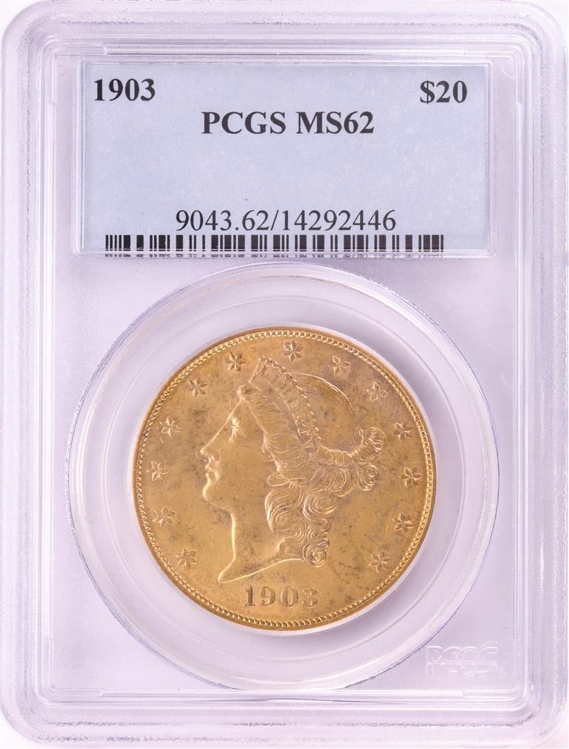 One 1903 $20 Liberty Head Double Eagle Gold Coin PCGS MS62. PCGS Graded.