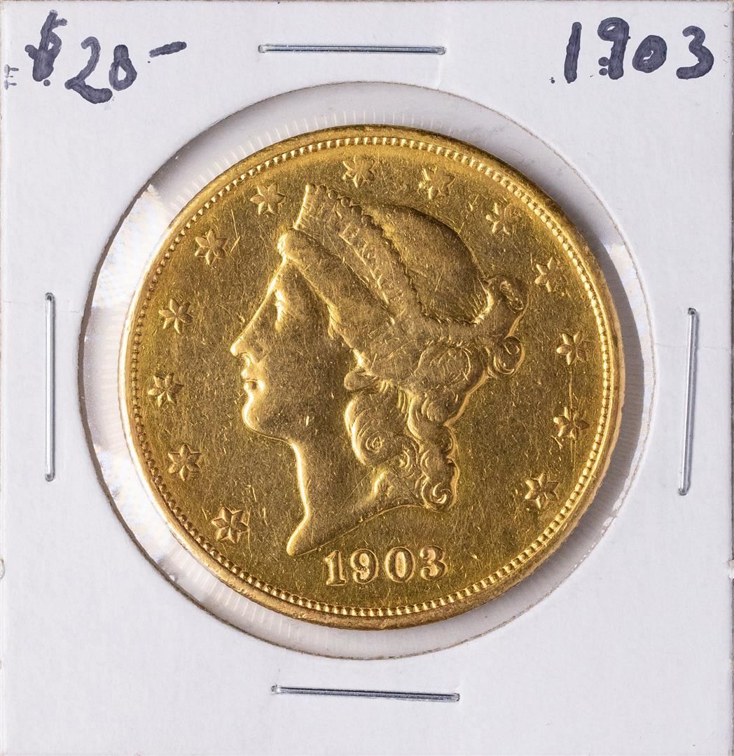 One 1903 $20 Liberty Head Double Eagle Gold Coin.
