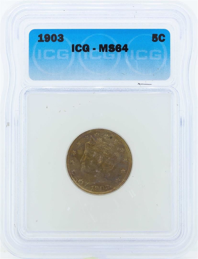 One 1903 Liberty Head Nickel Coin ICG MS64. ICG Certified.