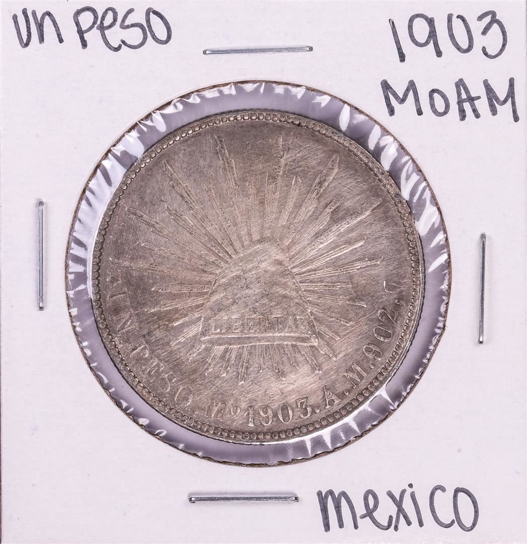 One 1903 Mo AM Mexico Un Peso Silver Coin.