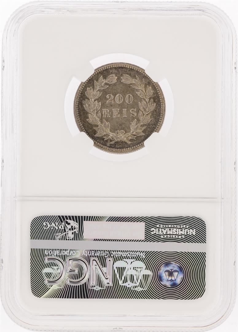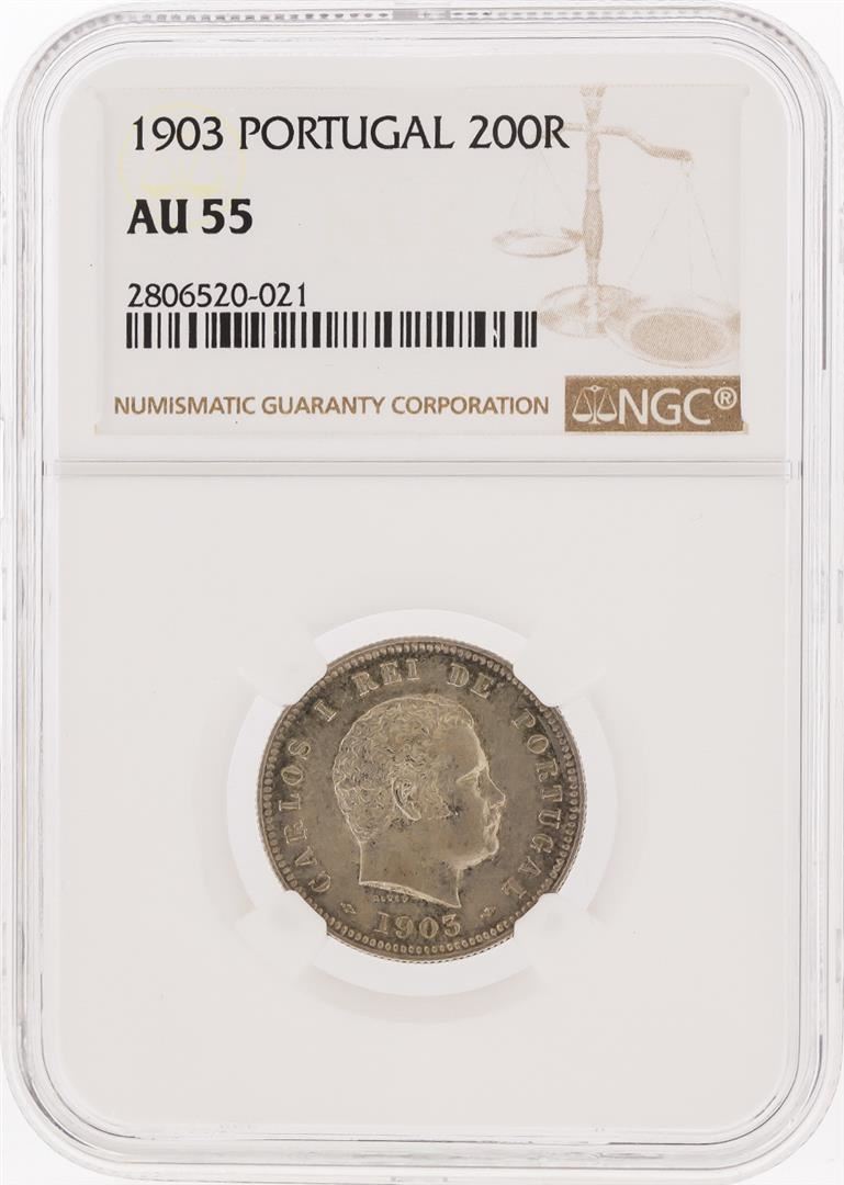 One 1903 Protugal 200 Reis Coin NGC Graded AU55. NGC Certified.