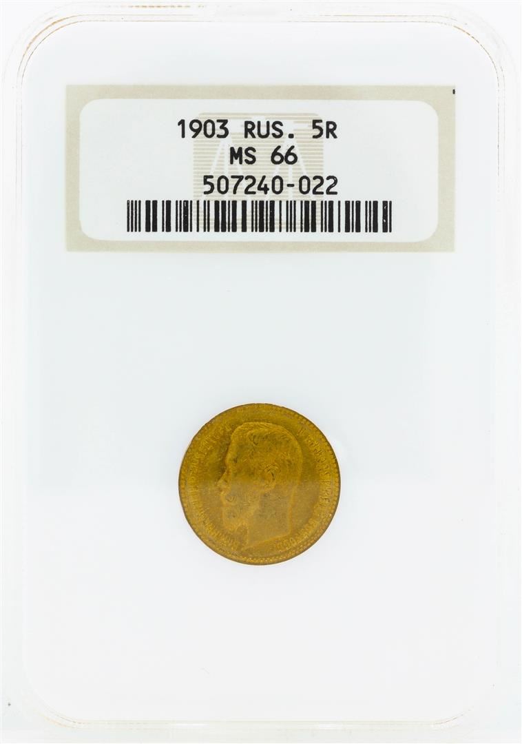 1903 Russia 5 Roubles Gold Coin NGC MS66
