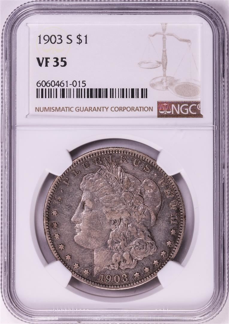 One 1903-S $1 Morgan Silver Dollar Coin NGC VF35. NGC Certified.