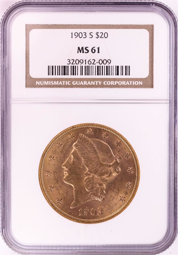 One 1903-S $20 Liberty Head Double Eagle Gold Coin NGC MS61. NGC Certified.
