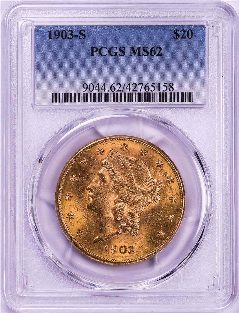 One 1903-S $20 Liberty Head Double Eagle Gold Coin PCGS MS62.