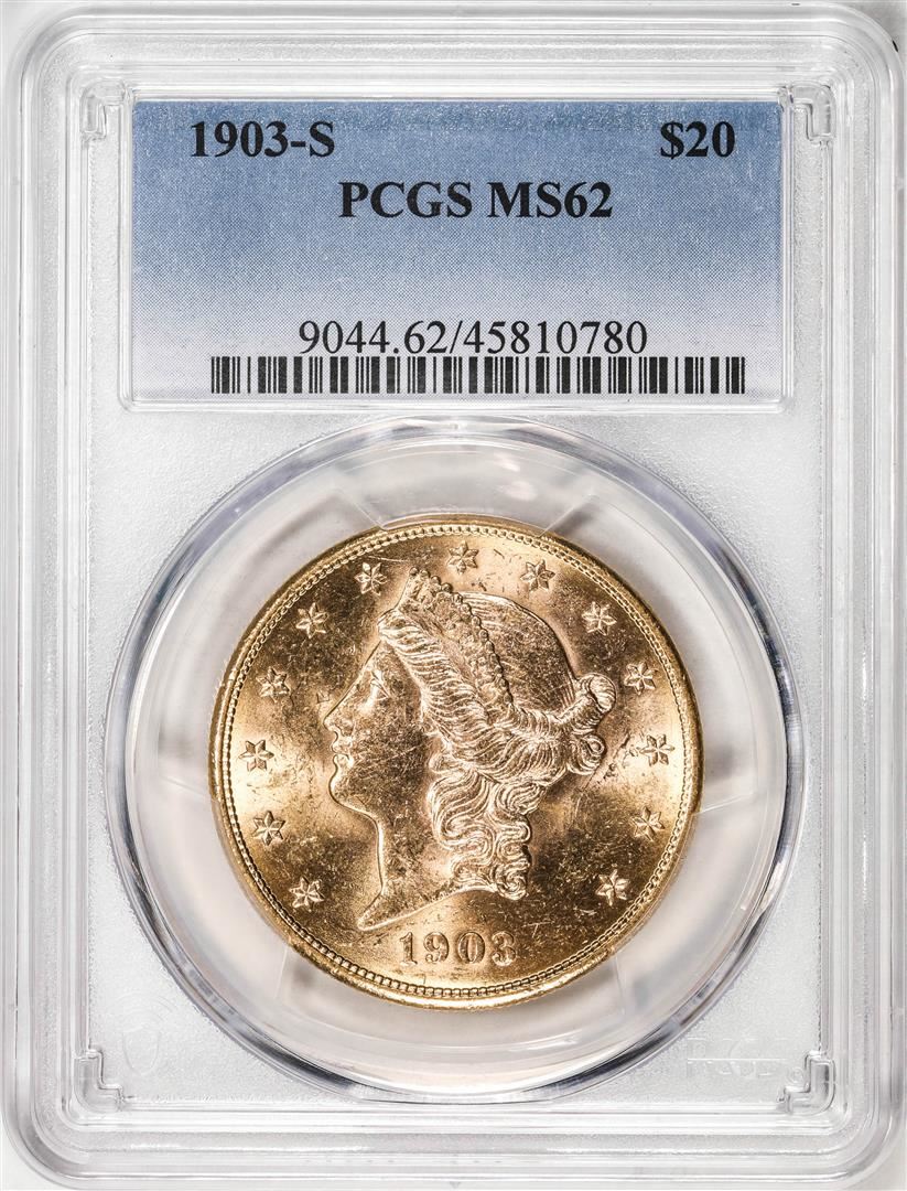 One 1903-S $20 Liberty Head Double Eagle Gold Coin PCGS MS62. PCGS Graded.