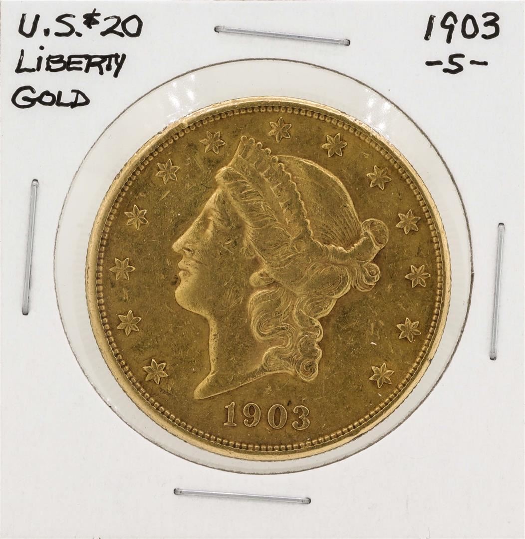 One 1903-S $20 Liberty Head Double Eagle Gold Coin.