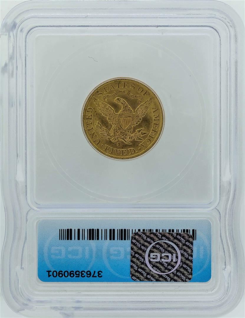 One 1903-S $5 Liberty Head Half Eagle Gold Coin ICG MS65. ICG Certified.