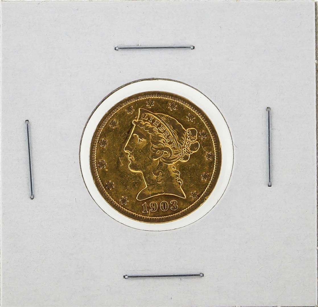 One 1903-S $5 Liberty Head Half Eagle Gold Coin.