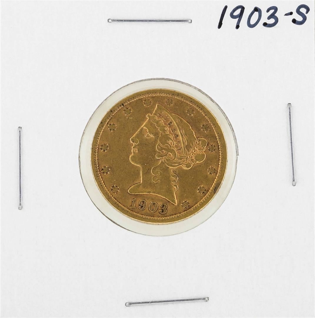 One 1903-S $5 Liberty Head Half Eagle Gold Coin.