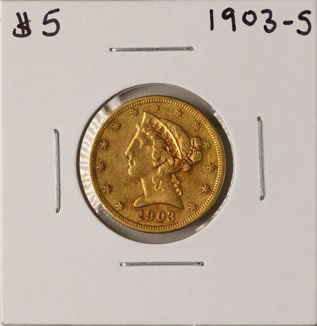 One 1903-S $5 Liberty Head Half Eagle Gold Coin.