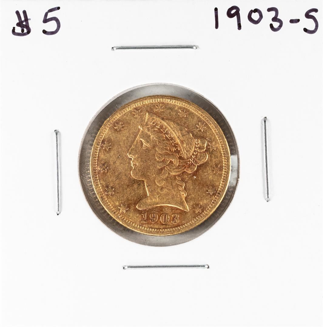 One 1903-S $5 Liberty Head Half Eagle Gold Coin.