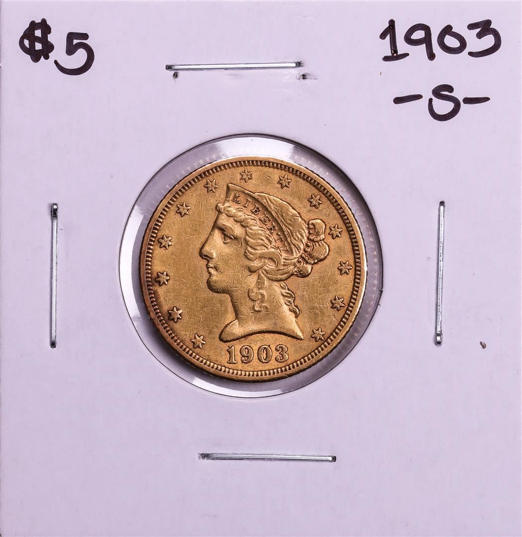 One 1903-S $5 Liberty Head Half Eagle Gold Coin.