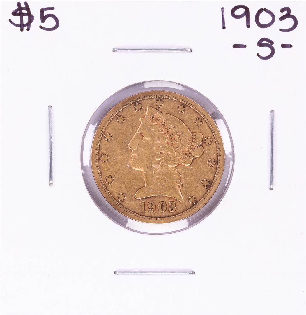 One 1903-S $5 Liberty Head Half Eagle Gold Coin.
