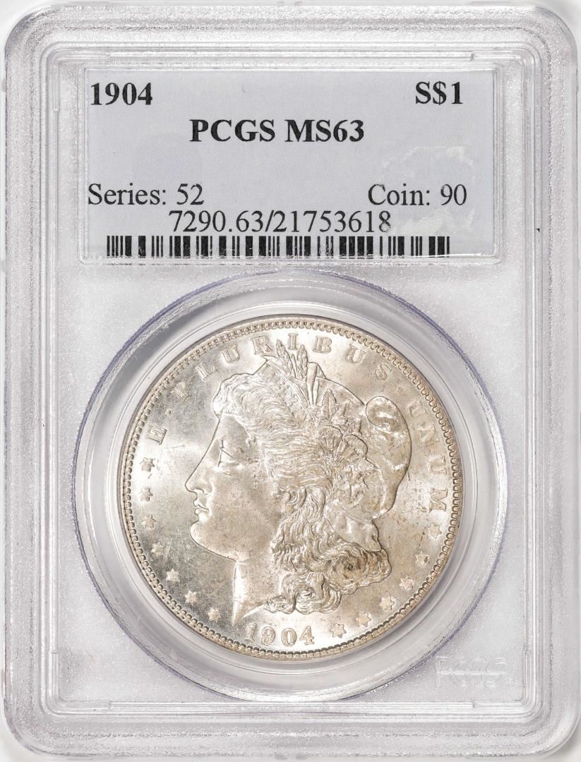 One 1904 $1 Morgan Silver Dollar Coin PCGS MS63. PCGS Graded.