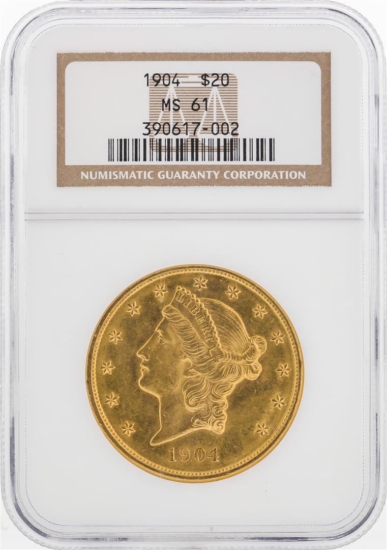 One 1904 $20 Liberty Head Double Eagle Gold Coin NGC MS61. NGC Certified.