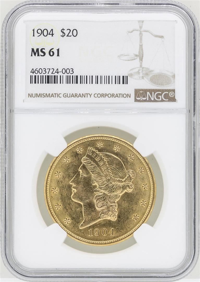 One 1904 $20 Liberty Head Double Eagle Gold Coin NGC MS61. NGC Certified.