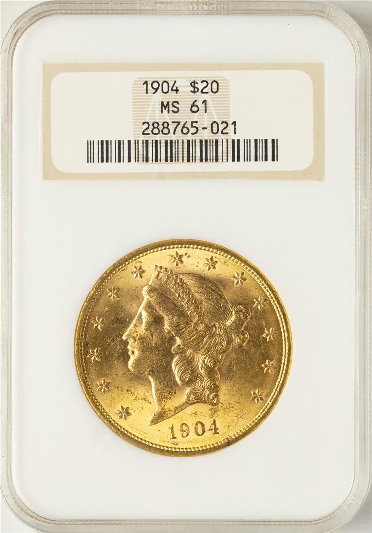 One 1904 $20 Liberty Head Double Eagle Gold Coin NGC MS61. NGC Certified.