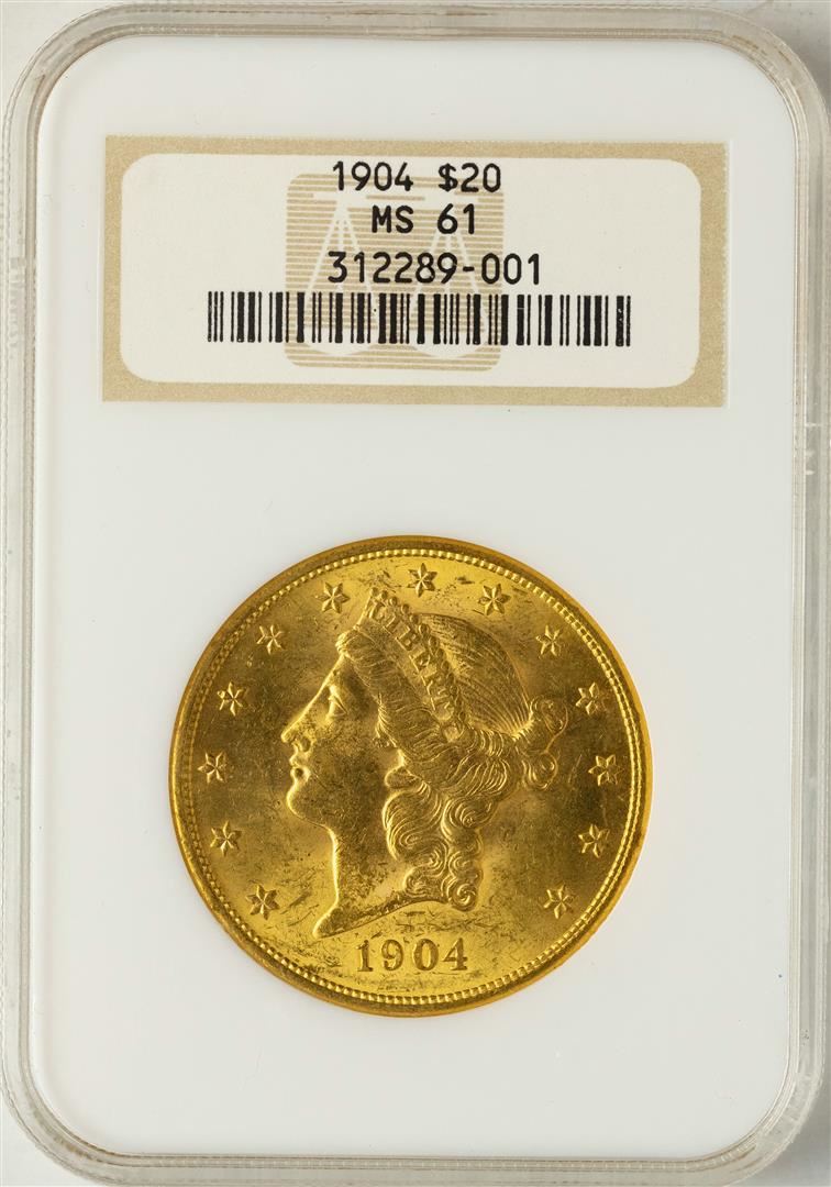 One 1904 $20 Liberty Head Double Eagle Gold Coin NGC MS61. NGC Certified.