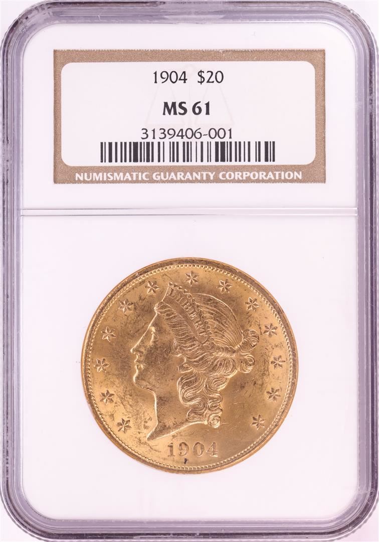 One 1904 $20 Liberty Head Double Eagle Gold Coin NGC MS61. NGC Certified.