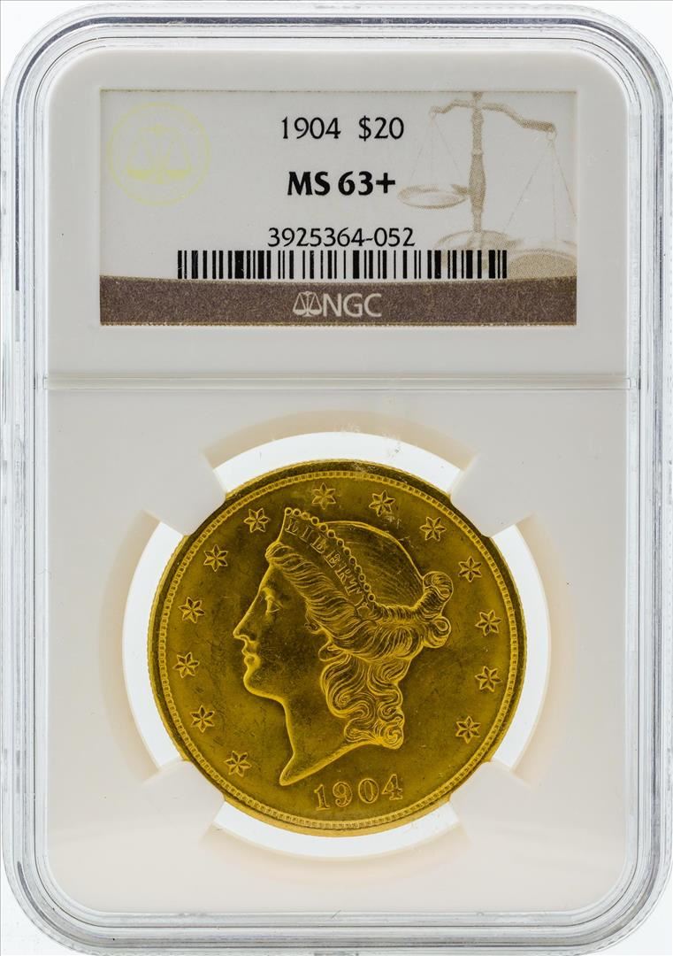 One 1904 $20 Liberty Head Double Eagle Gold Coin NGC MS63+. NGC Certified.