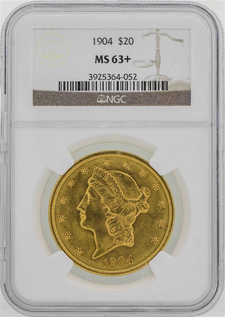 One 1904 $20 Liberty Head Double Eagle Gold Coin NGC MS63+. NGC Certified.