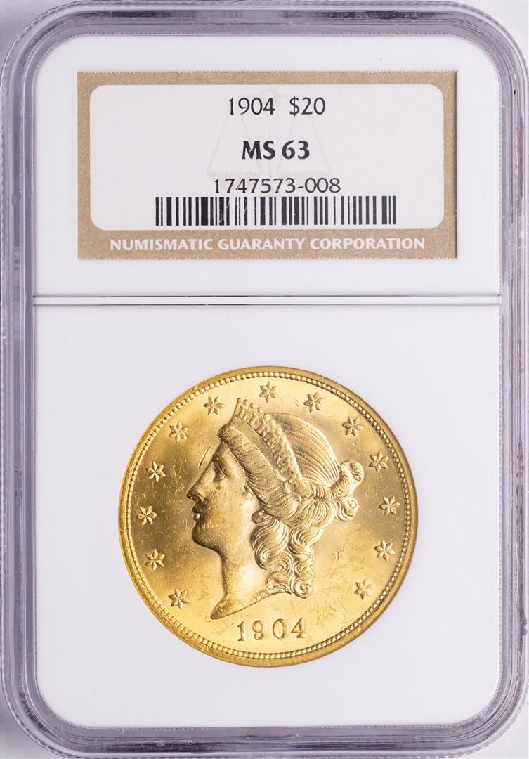 One 1904 $20 Liberty Head Double Eagle Gold Coin NGC MS63. NGC Certified.