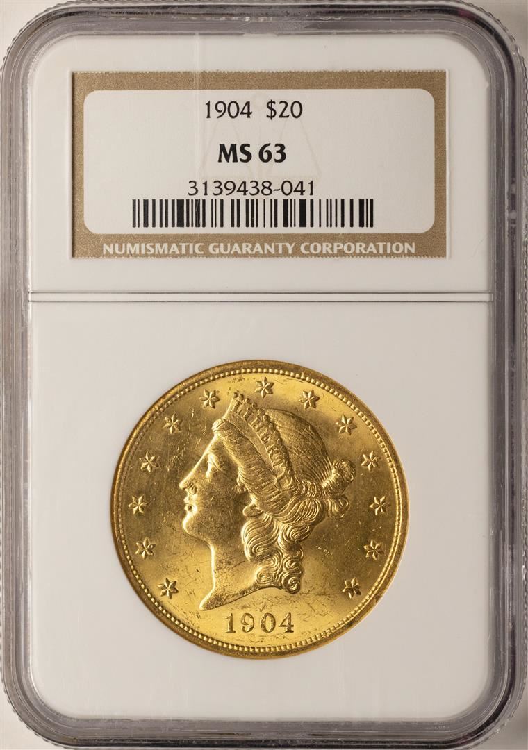 One 1904 $20 Liberty Head Double Eagle Gold Coin NGC MS63. NGC Certified.